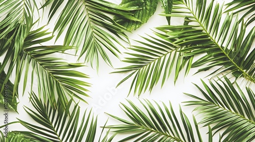 Fototapeta premium Vibrant Green Palm Leaves on White Background