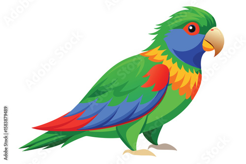 © Bablu, Obraz premium Vibrant Green Parrot with Blue and Red Accents, a Colorful Bird Illustration, Perfect for Nature and Wildlife Enthusiasts