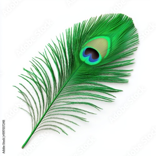 © Flowaiart, Obraz premium Vibrant Green Peacock Feather with Beautiful Eye Spot Display
