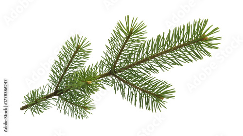 Naklejka premium Vibrant green pine branch with delicate needles, perfect for naturalistic designs and festive holiday themes, offering fresh botanical beauty