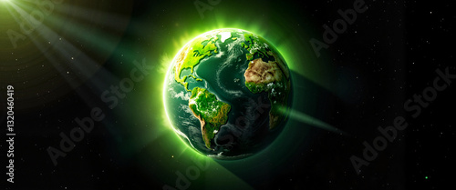 Obraz premium Vibrant green planet with glowing aura in space, environmental symbolism