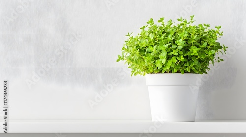 Fototapeta premium Vibrant green plant display minimalist interior photography bright atmosphere...