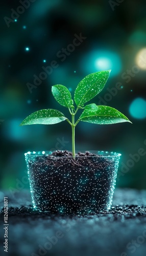 © Ilja, Fototapeta premium Vibrant Green Plant Sprouting from Rich Soil, Symbolizing Hope and Renewal in Nature s Cycle