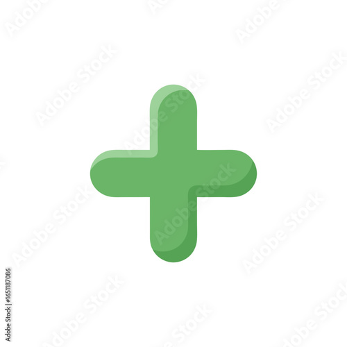 © , Fototapeta premium Vibrant green plus symbol with subtle shadow against a clean white backdrop design element showcasing geometric shapes and depth illustration
