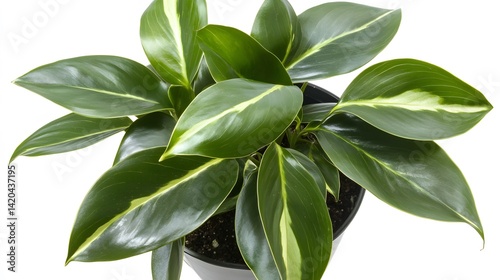 © sahina, Obraz premium Vibrant Green Potted Plant with Variegated Leaves