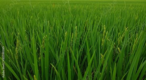 © Darto, Obraz premium Vibrant green rice field under bright sunlight showing natures beauty