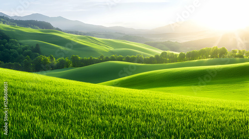 © Arthur Constantine, Fototapeta premium Vibrant Green Rolling Hills at Sunrise