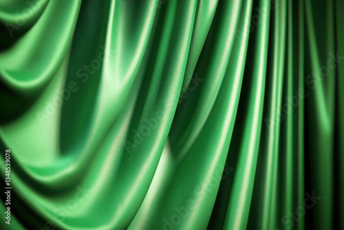 © Lara, Obraz premium Vibrant green stage curtains with smooth folds and soft lighting