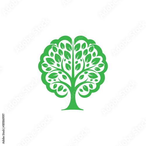 © Ataur400, Fototapeta premium Vibrant green stylized tree logo design representing nature, growth, life, and organic concepts, isolated on white background