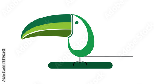 © Alienmarsh, Obraz premium Vibrant Green Toucan Bird Minimalist Vector Illustration Wildlife Graphic Art on White Background