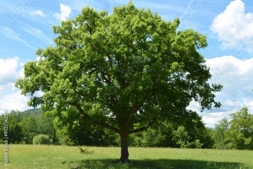 Fototapeta premium Vibrant Green Tree in Field on Sunny Day