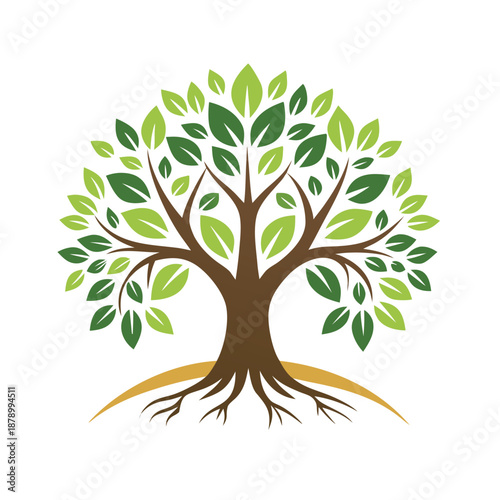 © Roushon, Fototapeta premium Vibrant green tree symbol with strong roots representing nature, life, and growth
