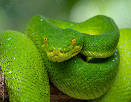 © Bayu, Fototapeta premium Vibrant Green Tree Viper Close Up Portrait