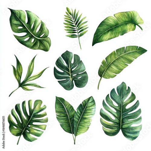 Fototapeta premium Vibrant Green Tropical Leaves Collection on White Background