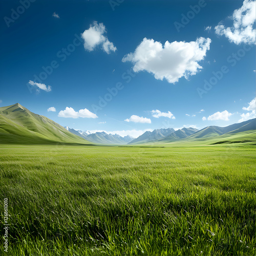 © Arthur Constantine, Fototapeta premium Vibrant Green Valley Landscape Under a Blue Sky