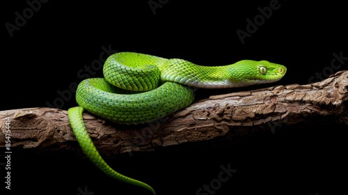 Fototapeta premium Vibrant Green Viper Snake on a Branch - Generative AI