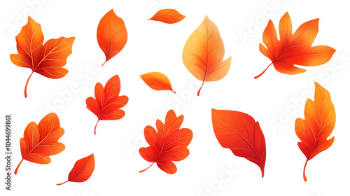 © Futuristictech, Fototapeta premium Vibrant Hand-Drawn Autumn Leaves Set on White Background for Seasonal Designs