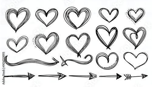 Fototapeta premium Vibrant HandDrawn Line Arrow Shape Brush Stroke Underline Vector Artwork Set...