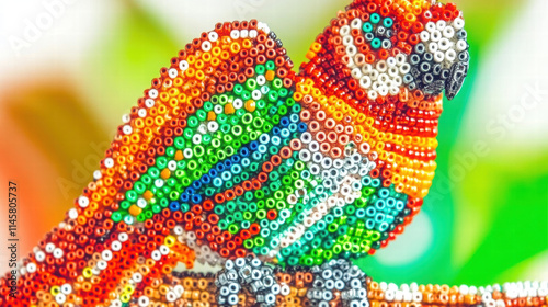 Obraz premium vibrant handmade beadwork representation of colorful parrot, showcasing...