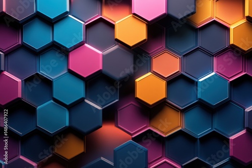 Naklejka premium Vibrant hexagonal pattern showcasing colorful geometry in abstract art form,...