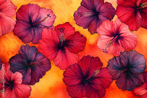 © Muhammad, Obraz premium Vibrant hibiscus blooms in a colorful, artistic display.