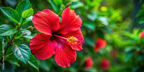 © chaowalit, Fototapeta premium Vibrant Hibiscus Flower Close-up Drone Murcia Spain