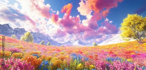 Obraz premium Vibrant Holi colors clouding the sky above an open field of wildflowers a?" q2,
