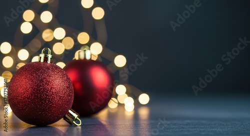 Fototapeta premium Vibrant holiday decorations glittering under bright festive lights creating a joyful seasonal background perfect for greetings and winter cheer, bauble, electric, winter
