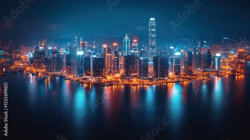 © Achmad, Fototapeta premium Vibrant Hong Kong Skyline at Night