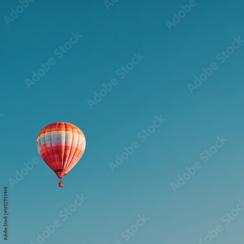 © Afifah, Obraz premium Vibrant Hot Air Balloon Against Clear Blue Sky Background