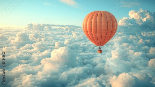 © Bandaro, Naklejka premium Vibrant Hot Air Balloon Floating Above Fluffy White Clouds at Sunrise