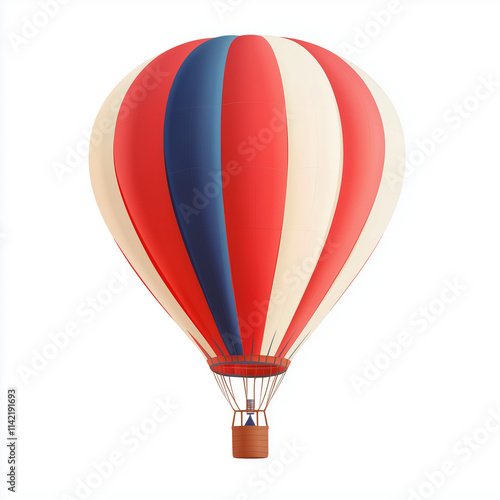 Fototapeta premium Vibrant hot air balloon illustration in vivid colors like red, blue, and yellow, isolated on a white background, perfect for travel and adventure concepts