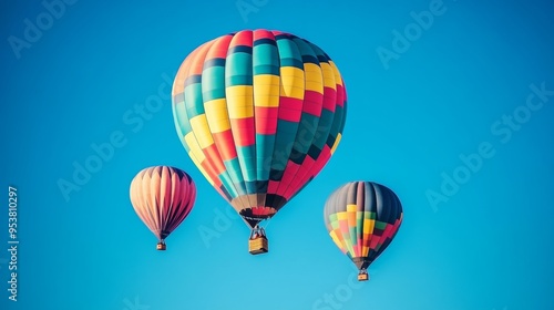 © Alex, Obraz premium Vibrant Hot Air Balloons Over Blue Sky at Albuquerque Balloon Festival Generative AI