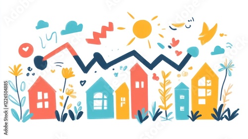 © isrofiyah, Fototapeta premium Vibrant Housing Market Growth: A Sunny Outlook for Homeowners