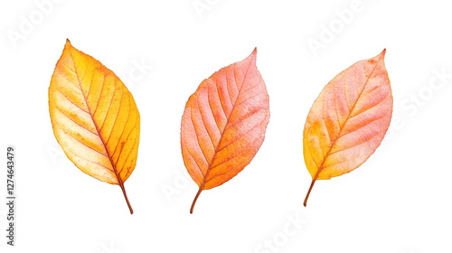 Fototapeta premium Vibrant hues of orange and yellow paint these autumn leaves, isolated on a...