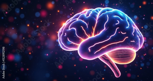 © hathairat, Obraz premium Vibrant Human Brain Outline with Colorful Lights and Abstract Effects