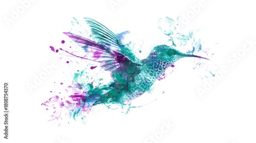 © decorator, Obraz premium Vibrant Hummingbird Flight Watercolor Art Dynamic Teal Emerald Magenta Motion Energy Illustration