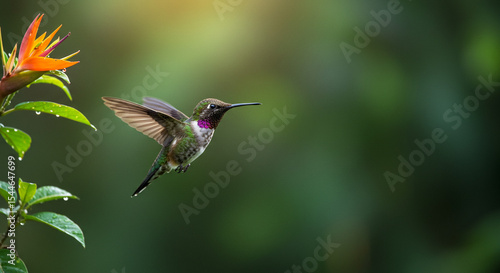 © FPH Lab, Naklejka premium Vibrant Hummingbird Flying Near Tropical Flower