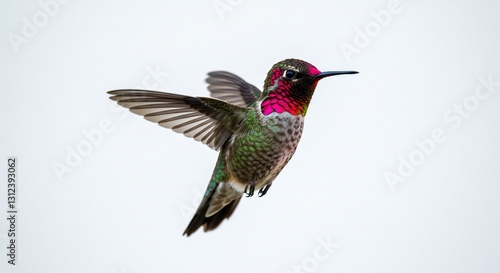 Obraz premium Vibrant hummingbird gracefully hovers against bright white background...