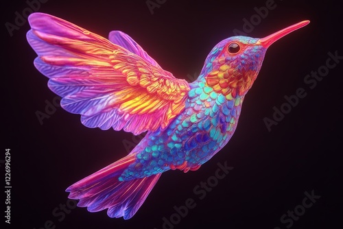 © ChaoticMind, Obraz premium Vibrant hummingbird hovering in mid-air with colorful plumage