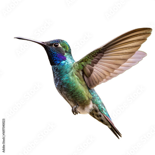 © Ahmed, Obraz premium Vibrant hummingbird hovering with iridescent feathers and delicate wings, capturing nature's swift beauty