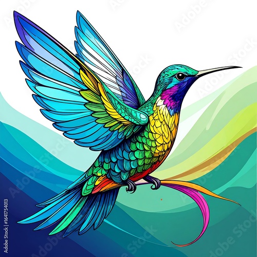 © gambar, Obraz premium Vibrant hummingbird in flight (3)