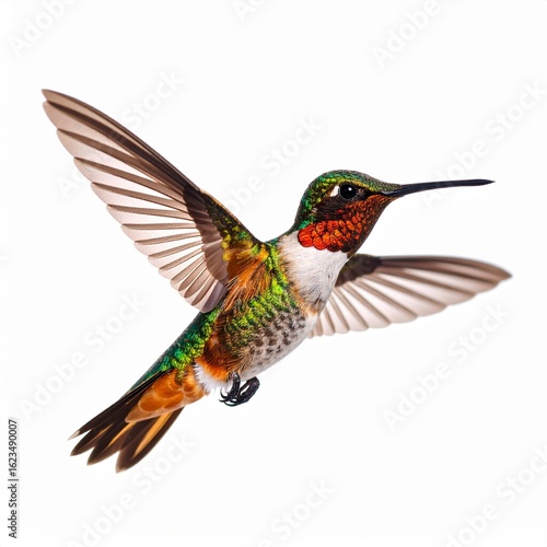 © ruangrit19, Fototapeta premium Vibrant Hummingbird in Flight Isolated on White Background.