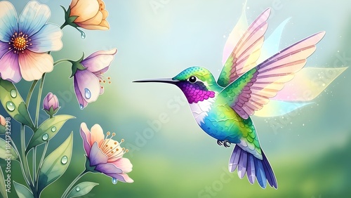 © Tharindu, Fototapeta premium Vibrant Hummingbird in Flight - Nature Background