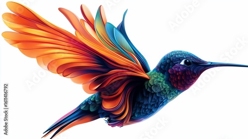© Sulis, Obraz premium Vibrant hummingbird in flight, showcasing vibrant, colorful feathers