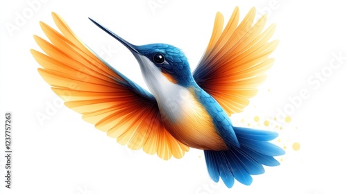 © Erisna Yolanda, Obraz premium Vibrant hummingbird in flight, white background, nature design