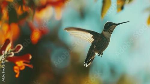 © Gro, Fototapeta premium Vibrant Hummingbird in Mid-Flight, Perfect for Nature Lovers Generative AI
