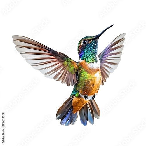 © Asit, Obraz premium Vibrant Hummingbird in Mid- Flight with Wings Spread Wide flying photo