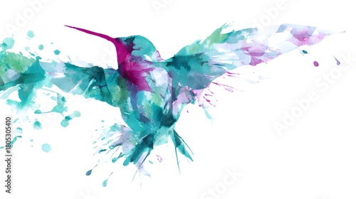 © decorator, Obraz premium Vibrant hummingbird watercolor illustration captures dynamic flight energy and graceful motion art