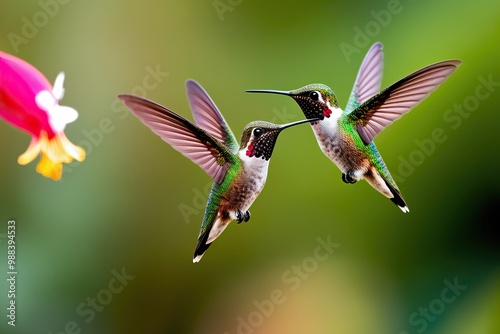 Naklejka premium Vibrant Hummingbirds in Nature Showcasing Agility and Energy